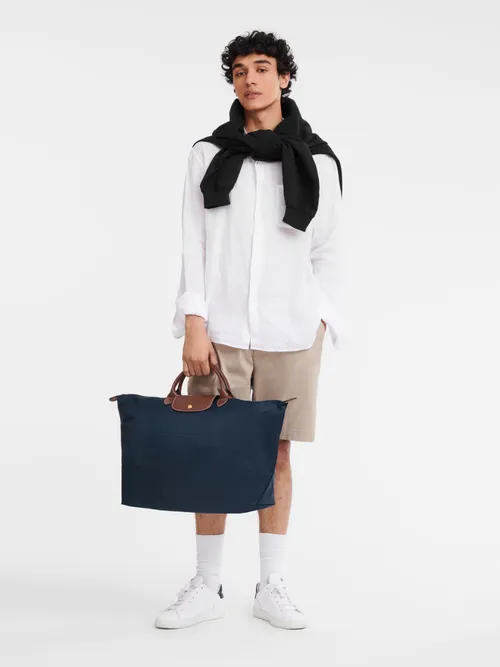 - Was passt rein? In die Reisetasche S Le Pliage Original von Longchamp passt alles, was du für einen Kurztrip oder als zusätzliches Handgepäck benötigst. Sie bietet Platz für Kleidung für 1–2 Tage, wie T-Shirts, Unterwäsche, einen leichten Pullover und eine Hose. Außerdem passen eine kleine Kulturtasche, ein kleines Notebook (bis 11 Zoll), ein Buch sowie eine 500-ml-Wasserflasche und Snacks hinein. Auch Ladegeräte, Kopfhörer und weiteres kleines Elektronik-Zubehör lassen sich bequem verstauen.