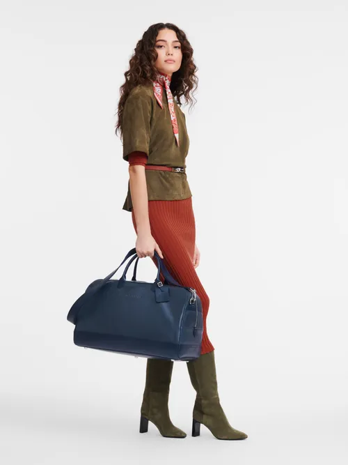 - Was passt rein? Die Reisetasche M Le Foulonné von Longchamp ist ähnlich geräumig wie die Le Pliage Original, jedoch aus hochwertigem, strapazierfähigem Leder gefertigt, wodurch sie sich ideal für elegante Kurzreisen eignet. In die Tasche passt Kleidung für 2–3 Tage, wie mehrere T-Shirts, Hemden, Hosen und Unterwäsche. Sie bietet ebenfalls Platz für eine kompakte Kulturtasche, ein Tablet oder Notebook (bis 13 Zoll), ein Buch oder Magazin und eine 500-ml-Wasserflasche. Dank der strukturierten Form ist sie besonders übersichtlich, sodass du auch kleinere Gegenstände wie Ladegeräte, Kopfhörer, ein Portemonnaie und wichtige Reisedokumente sicher verstauen kannst.