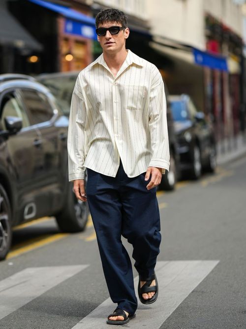 Anstatt zu Schuhen mit einem hohen Schaft zu greifen, sollte man generell zu Halbschuhe oder Sneakers greifen, die zwischen Hose und Schuh ein wenig Haut durchblitzen lassen. So sieht man automatisch größer aus. Ein weiterer Trick ist in offene Schuhe zu schlüpfen, denn diese schummeln noch zusätzliche Zentimeter in die Höhe. Die freiliegenden Stellen wirken luftiger und somit auch größer.